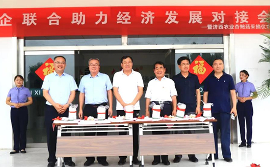 7月18日,由濟(jì)西農(nóng)業(yè)發(fā)起的“政企聯(lián)合助力經(jīng)濟(jì)發(fā)展對接會暨濟(jì)西農(nóng)業(yè)杏鮑菇采銷儀式”在濟(jì)西食用菌項(xiàng)目部啟動。長清區(qū)副區(qū)長劉永亭、省派長清區(qū)鄉(xiāng)村振興服務(wù)隊(duì)隊(duì)長邱劍峰、建設(shè)集團(tuán)副總經(jīng)理徐文東參加活動。