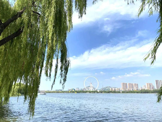 幾場雨過后,長清湖水位創(chuàng)歷史新高,藍天白云、岸綠湖清,信步其間、倍感愜意。