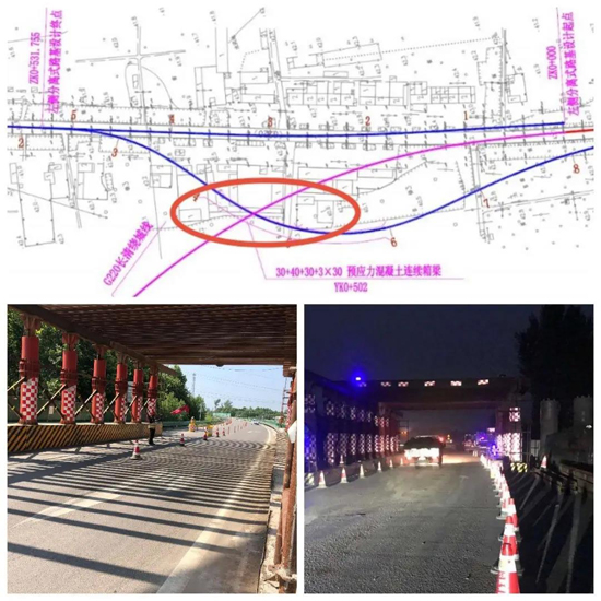 精心策劃,嚴控施工進度。精心設計施工及交通組織,采用圍擋半封閉通行施工組織方案,施工人員及機械全部在圍擋內(nèi)側或隔離區(qū)進行施工,確保安全施工、安全通行;邀請專家對交通組織方案審查指導,確保方案的科學性、可行性。