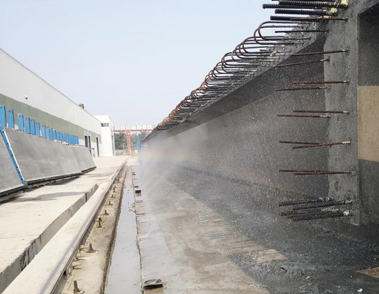 施工現(xiàn)場在嚴格落實“四個一律,六個百分百”環(huán)保要求的基礎(chǔ)上,用“可持續(xù)”的眼光對項目傳統(tǒng)的施工工藝、技術(shù)等重新審視、改進。現(xiàn)場安裝揚塵、噪音在線檢測設(shè)施;鋼筋加工區(qū)采用焊煙凈化器;灰土施工采用粉料撒布機,配合濕法作業(yè);箱梁自動養(yǎng)護噴淋系統(tǒng),滿足梁板養(yǎng)護質(zhì)量同時提高了水資源的循環(huán)利用;鋼筋加工集約化,實現(xiàn)文明施工,既減輕了工地施工現(xiàn)場管理負擔,又減少多點位的環(huán)境噪音、煙氣污染源,從根本上改善了施工擾民問題。