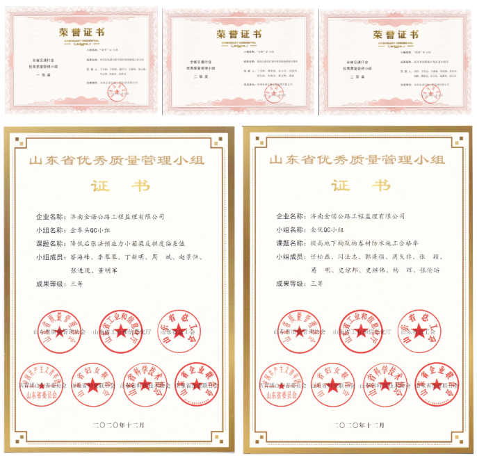 質(zhì)量是企業(yè)的生命,工程質(zhì)量是工程建設的核心。金諾公司積極組織科技工作者參加全面質(zhì)量管理培訓、鼓勵科技工作者依托監(jiān)理服務項目開展全面質(zhì)量管理活動。2020年度金諾公司組建了10個QC小組,取得QC成果11篇。其中4個QC小組(成果)獲地市級獎項,4個QC小組(成果)獲省部級獎項。