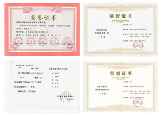 項目在保證施工安全、質(zhì)量、工期的同時,積極開展優(yōu)化、創(chuàng)新活動。“精工”QC小組《減小新舊路基搭接處的病害率》課題,被濟(jì)南市質(zhì)量管理協(xié)會評為2020年度一等獎,山東公路協(xié)會一等獎,并被評為2020年濟(jì)南市“講理想、比貢獻(xiàn)”活動優(yōu)秀科技創(chuàng)新項目;“騰飛”QC小組《提高通行路段圍擋清潔度》課題,被濟(jì)南市質(zhì)量管理協(xié)會評為2020年度二等獎。