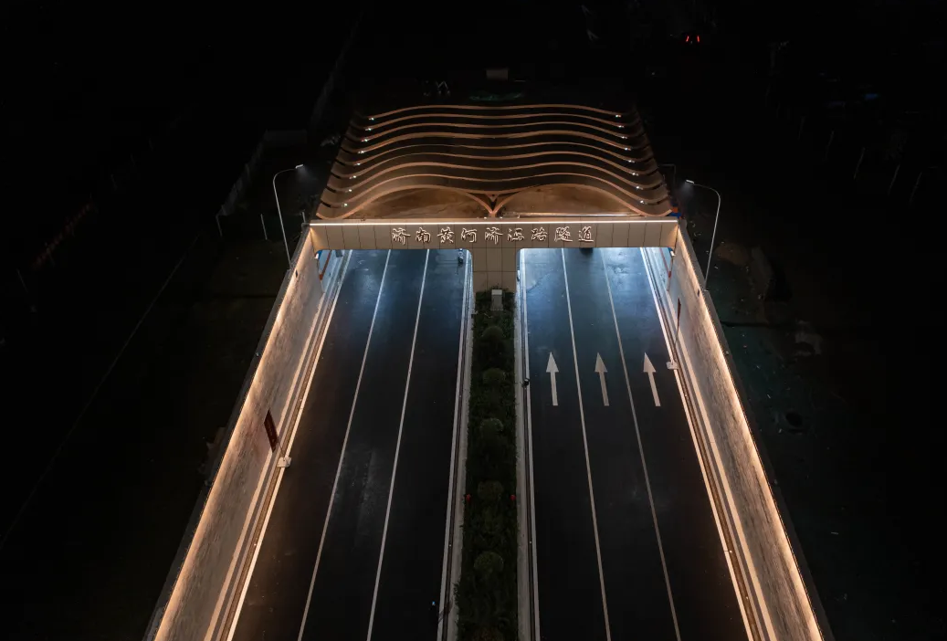 濟(jì)南黃河濟(jì)濼路隧道設(shè)計(jì)方案以黃河文化根脈為基,黃河之“光”為“場(chǎng)”,融合黃河歷史、文化、自然、藝術(shù)等表現(xiàn)黃河兩岸是我家。“黃河根脈歲歲安瀾”主題設(shè)計(jì)定位為城河相融,動(dòng)靜相融,蘊(yùn)含“天人合一”的設(shè)計(jì)理念,讓黃河隧道藝術(shù)空間景觀和自然互為補(bǔ)充。設(shè)計(jì)中借黃河水紋傳統(tǒng)紋樣,將黃河文化與自然生態(tài)中的場(chǎng)地、色彩、光影結(jié)合,再造了黃河地形與黃河流動(dòng)的自然之美,描繪了新時(shí)代黃河畫(huà)卷中詩(shī)情畫(huà)意的城市底蘊(yùn)。
