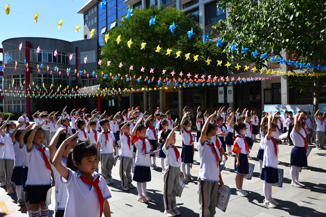 活動(dòng)中,志愿者身著紅色志愿者馬甲,與小朋友們進(jìn)行親密互動(dòng),為孩子們佩戴少先隊(duì)隊(duì)徽,以通俗易懂的方式為大家講解少先隊(duì)知識(shí)、安全防疫知識(shí),提醒提高安全防護(hù)意識(shí)。志愿者們與小朋友們有說(shuō)有笑,其樂(lè)融融,為小朋友們送去集團(tuán)的關(guān)愛(ài)和祝福,祝愿孩子們開(kāi)心快樂(lè)成長(zhǎng)。孩子們用整齊的少先隊(duì)禮回應(yīng)志愿者,稚嫩的童顏上洋溢著燦爛的笑容。
