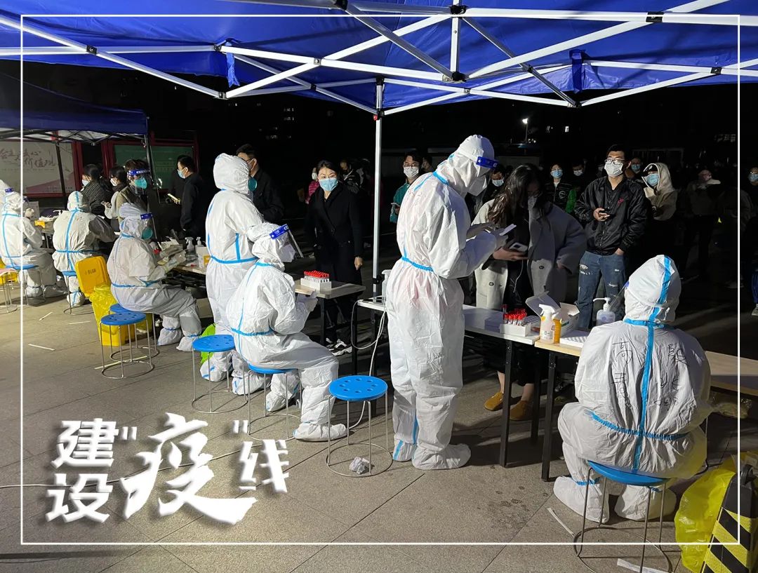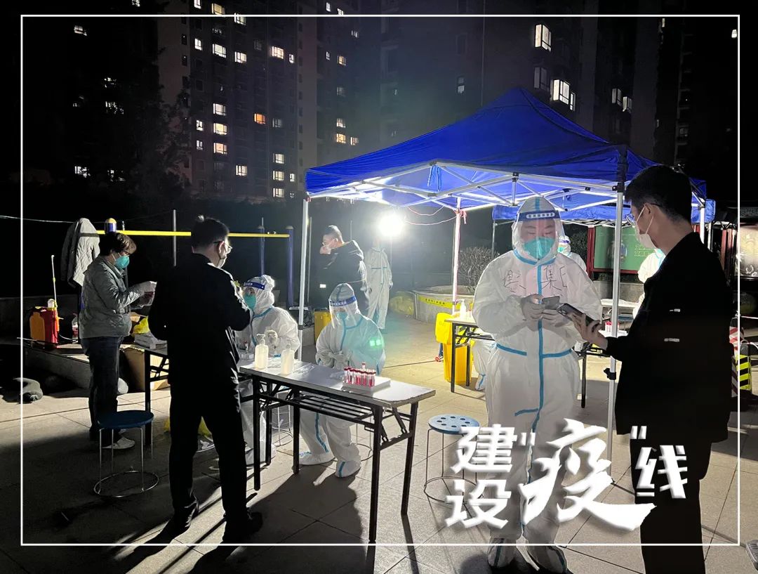 按照工作分工,下沉社區(qū)的工作人員要協(xié)助醫(yī)務(wù)人員開展核酸檢測工作,從檢測場地設(shè)施搭建、隊(duì)伍組織、信息登記錄入再到檢測后的證明貼紙發(fā)放都有集團(tuán)志愿者的身影。以許成龍所在的小區(qū)為例,每天要完成2300余人的核酸檢測輔助工作,等到社區(qū)居民結(jié)束檢測,歸置好檢測樣本,完成場地消殺基本在晚上11:00左右。