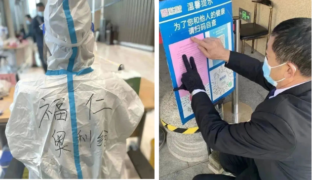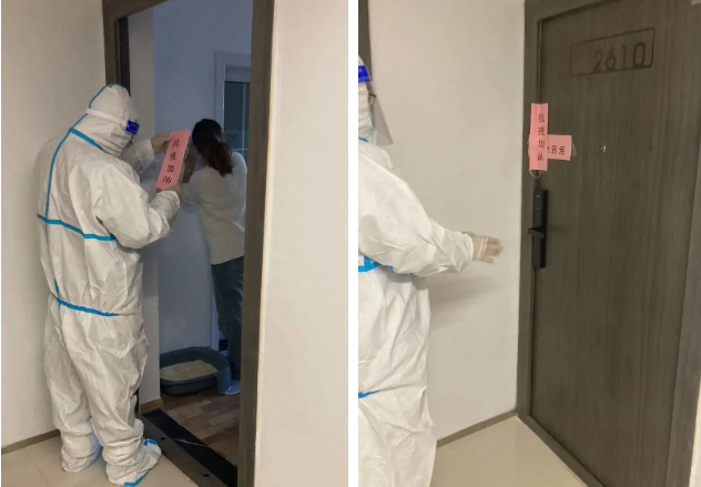 當(dāng)柏然公館項目收到業(yè)主需要居家隔離的通知,福仁服務(wù)人員身穿防護(hù)服,上門耐心溝通安撫,“遇到事情需要代辦的,東西需要代買的,隨時打電話找我們!我們24小時為你開機(jī)!”