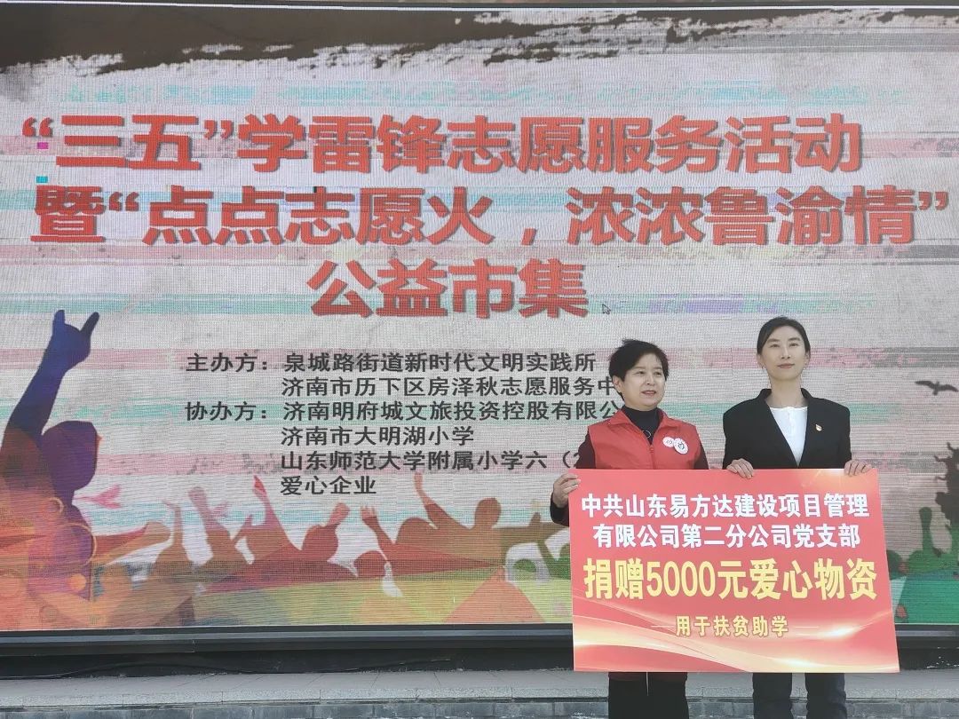 為進(jìn)一步學(xué)習(xí)和弘揚(yáng)雷鋒精神,大力發(fā)揚(yáng)“奉獻(xiàn)、友愛(ài)、互助、進(jìn)步”的志愿精神,積極響應(yīng)拓展東西部協(xié)作工作領(lǐng)域,促進(jìn)東西部協(xié)作,共建魯渝情。3月5日,易方達(dá)公司所屬黨支部作為愛(ài)心企業(yè)代表,參與了濟(jì)南市歷下區(qū)房澤秋志愿服務(wù)中心主辦的“點(diǎn)點(diǎn)志愿火,濃濃魯渝情”公益市集活動(dòng)。