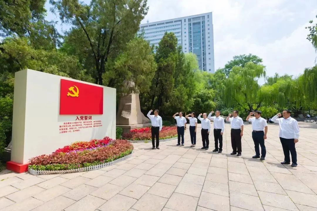 在中共山東早期歷史紀念館,全體黨員跟隨工作人員的講解,認真回顧了黨的革命歲月,以及早期山東共產(chǎn)黨人斗爭、挫折、再斗爭直至勝利的革命精神,進一步堅定了理想信念、提升了黨性修養(yǎng)。隨后,黨員們面對黨旗宣誓,重溫入黨誓詞。