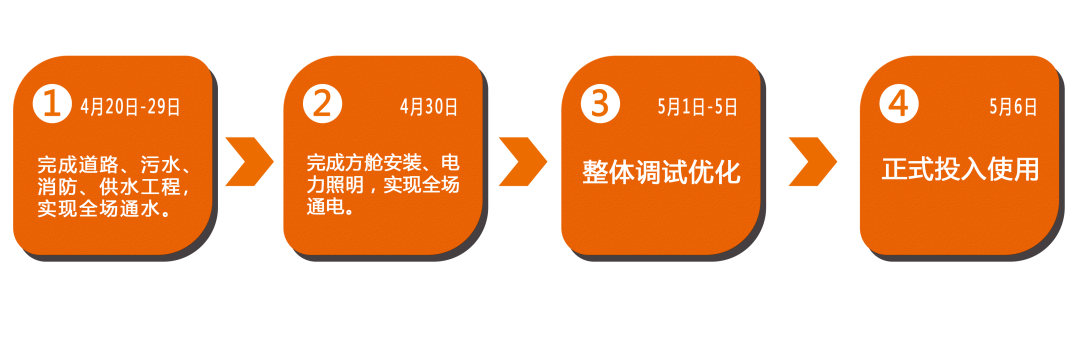起跑即沖刺,開工即大干。八角驛站項目突擊隊在接到指令后,當晚組織機械、人員進場清表。第二天拿到設計圖紙后,2個小時內完成工程量計算,并運用BIM建模技術,迅速建立場地三維數(shù)字模型,實施裝配式快易施工方案。在保證施工質量的同時,精心策劃、精心準備、流水作業(yè)、無縫銜接,快速開啟拼搶決戰(zhàn)模式。