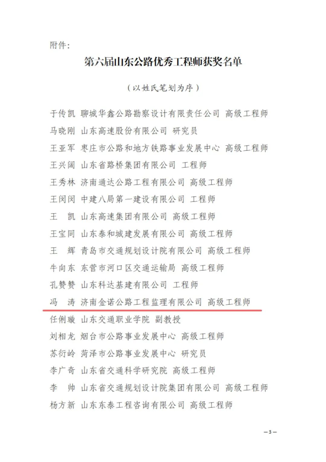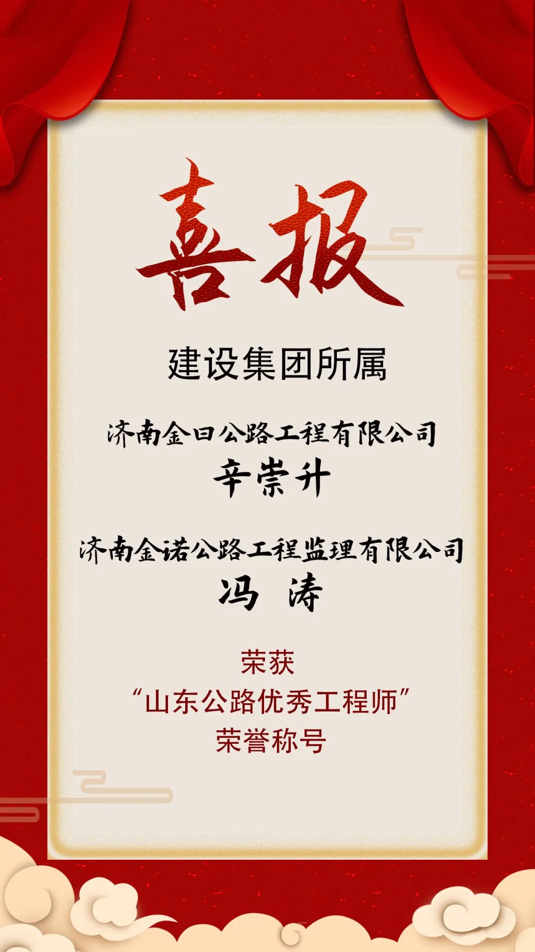 近日,山東公路學(xué)會(huì)發(fā)布《山東公路學(xué)會(huì)關(guān)于表彰第六屆山東公路優(yōu)秀工程師的決定》的通知,建設(shè)集團(tuán)所屬濟(jì)南金曰公路工程有限公司副總經(jīng)理辛崇升、濟(jì)南金諾公路工程監(jiān)理有限公司副總經(jīng)理馮濤榮獲 “山東公路優(yōu)秀工程師”榮譽(yù)稱號(hào)。