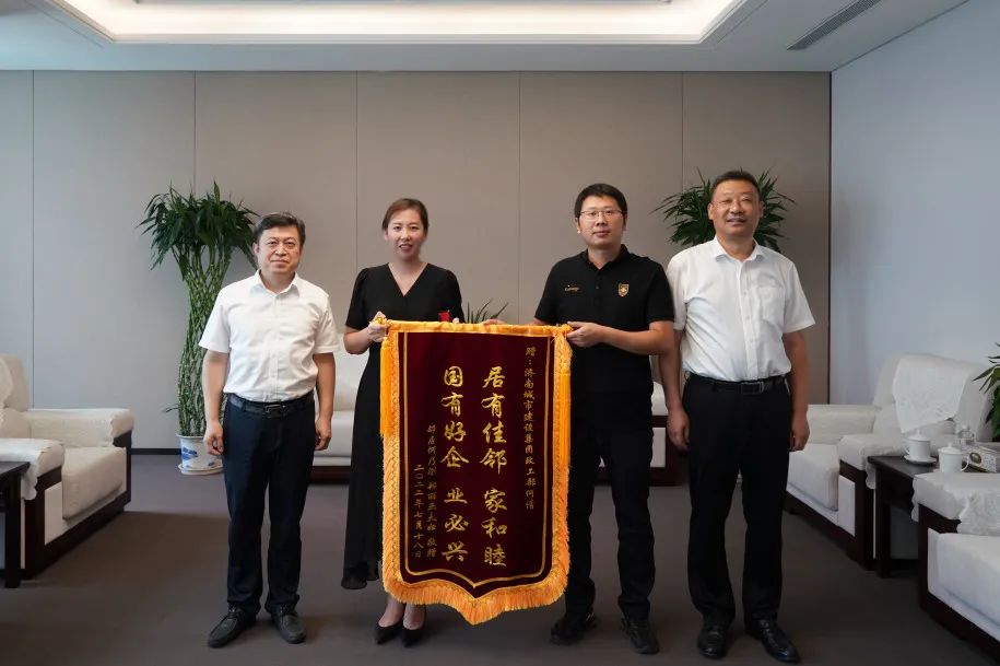 7月18日,一面印有“居有佳鄰家和睦 國有好企業(yè)必興”的錦旗送至建設(shè)集團(tuán),這是濟(jì)南市民何先生對(duì)集團(tuán)職工何倩給予其妻子的及時(shí)幫助表示誠摯的感謝。集團(tuán)黨委副書記鐘善良、政工部負(fù)責(zé)同志出席活動(dòng)。