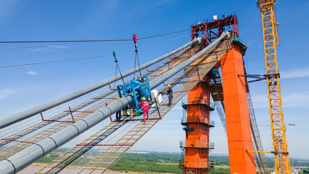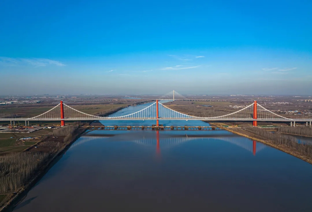 濟(jì)南黃河鳳凰大橋項(xiàng)目由濟(jì)南城市建設(shè)集團(tuán)投資建設(shè),上海市政工程設(shè)計研究總院(集團(tuán))設(shè)計,中鐵十二局、中交第二航務(wù)工程局負(fù)責(zé)施工。工程自2018年1月啟動以來,省、市領(lǐng)導(dǎo)高度關(guān)注,多次蒞臨現(xiàn)場調(diào)研指導(dǎo);相關(guān)區(qū)縣、管委會、市直部門全力支持,及時協(xié)調(diào)解決問題,提供高效要素保障;各參建單位克服技術(shù)難度高、施工工期緊等因素,在保證質(zhì)量和安全的前提下,加班加點(diǎn),飽和施工,按期實(shí)現(xiàn)了交工通車目標(biāo)。