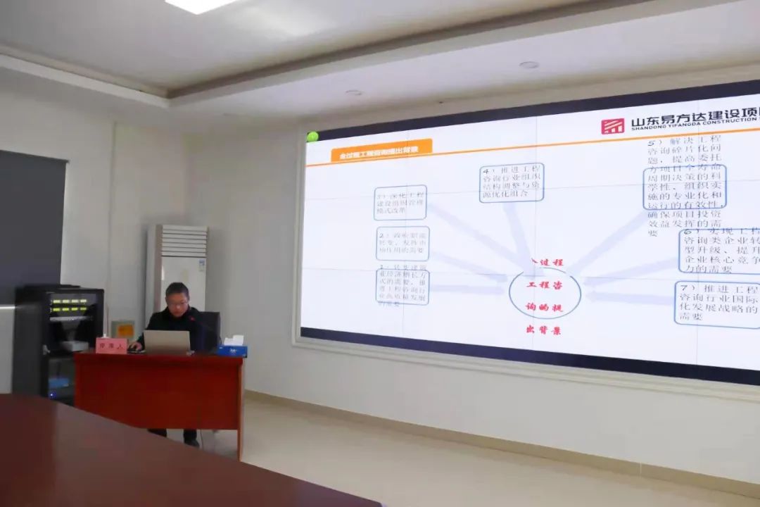 易方達(dá)建設(shè)項(xiàng)目管理有限公司項(xiàng)目經(jīng)理、黃河大橋項(xiàng)目地面道路標(biāo)段的總監(jiān)理工程師、高級(jí)工程師溫建偉以《全過(guò)程工程咨詢(xún)管理經(jīng)驗(yàn)淺談》為題,詳細(xì)介紹了全過(guò)程咨詢(xún)提出背景及政治文件解讀、管理模式、業(yè)務(wù)難點(diǎn)及建議、工作方法等內(nèi)容。