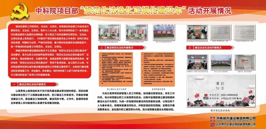 為在統(tǒng)籌做好建設工地常態(tài)化疫情防控的基礎上,積極推動集團重點項目加強廉潔文化建設及規(guī)范化法治化正規(guī)化建設,6月24日,濟南城市建設集團黨委委員、紀委書記、監(jiān)察專員劉學謙帶隊到中國科學院空天信息創(chuàng)新研究院濟南園區(qū)(一期)建設項目、濟鋼森林公園地下商業(yè)項目開展實地調研,集團紀委相關部室、易方達公司主要負責同志參加活動。