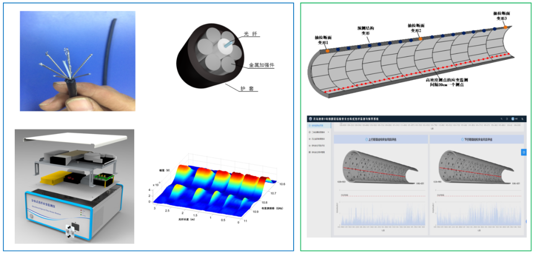 在濟南地鐵3號線,針對復雜環(huán)境下地鐵隧道監(jiān)測與狀態(tài)診斷的難題,項目建立了基于全分布式光纖測技術(shù)的長距離(20千米)地鐵隧道結(jié)構(gòu)運營安全監(jiān)測與預(yù)警系統(tǒng),打破了傳統(tǒng)點式傳感技術(shù)的局限性,實現(xiàn)對地下軌道交通網(wǎng)絡(luò)整體運營狀態(tài)的安全監(jiān)測。