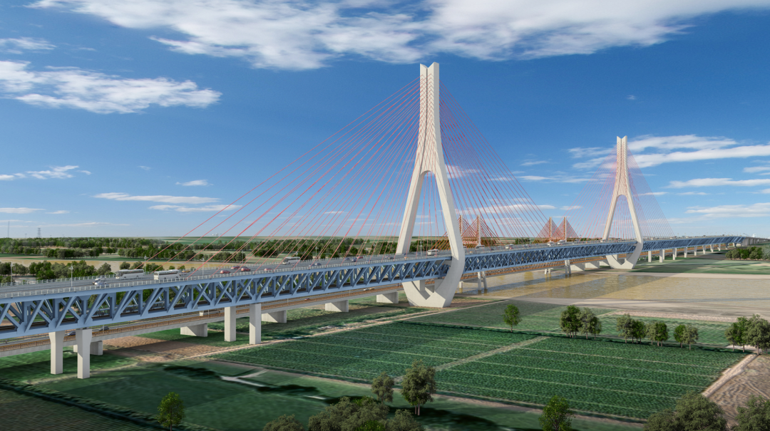 項(xiàng)目起點(diǎn)位于歷城區(qū)濟(jì)華路與二環(huán)東路平交口以南約500米,終點(diǎn)位于起步區(qū)大橋街道山后陳家以東與G220平交。項(xiàng)目全長(zhǎng)7.748公里,其中主線橋梁長(zhǎng)6.87公里;上下口匝道2對(duì);互通立交2處,分別為零點(diǎn)立交及黃河北立交;設(shè)置養(yǎng)護(hù)工區(qū)1處,大橋收費(fèi)站1處、匝道收費(fèi)站2處,不設(shè)置服務(wù)區(qū)。主線采用一級(jí)公路兼具城市快速路標(biāo)準(zhǔn)建設(shè),設(shè)計(jì)速度80公里/小時(shí),采用雙向六、八車道。濟(jì)廣高速改造為雙向六車道,設(shè)計(jì)速度為120 公里/小時(shí),具備遠(yuǎn)期改造為雙八城市快速路的條件。黃河大橋主橋?yàn)橹骺?88米的雙塔雙索面鋼桁梁斜拉橋,新、老橋中心間距33.5米,組合形成世界上第一座三層橋面空間布置的斜拉橋群。黃河大橋?qū)崿F(xiàn)了城市主干路、城市快速路、軌道交通、高速公路及國(guó)家干線公路等多功能需求,為國(guó)內(nèi)首座五位一體超級(jí)綜合體工程。