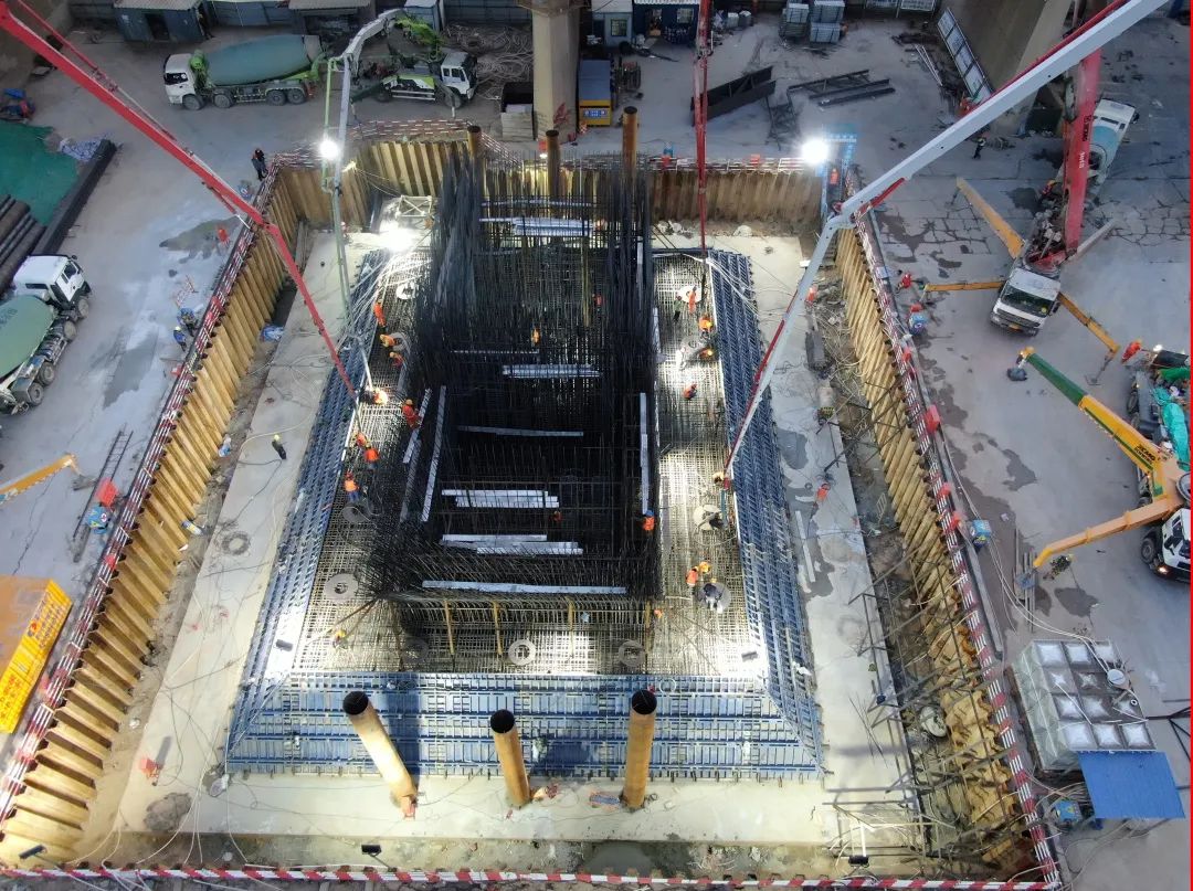 目前項(xiàng)目正在進(jìn)行主線部分施工,100#主塔塔座及起步段混凝土澆筑完成,101#墩主塔下塔柱第一節(jié)混凝土澆筑完成。全線墩柱累計(jì)完成10座,全線承臺(tái)累計(jì)完成35座,全線樁基累計(jì)完成518顆。附屬工程施工同步進(jìn)行中。