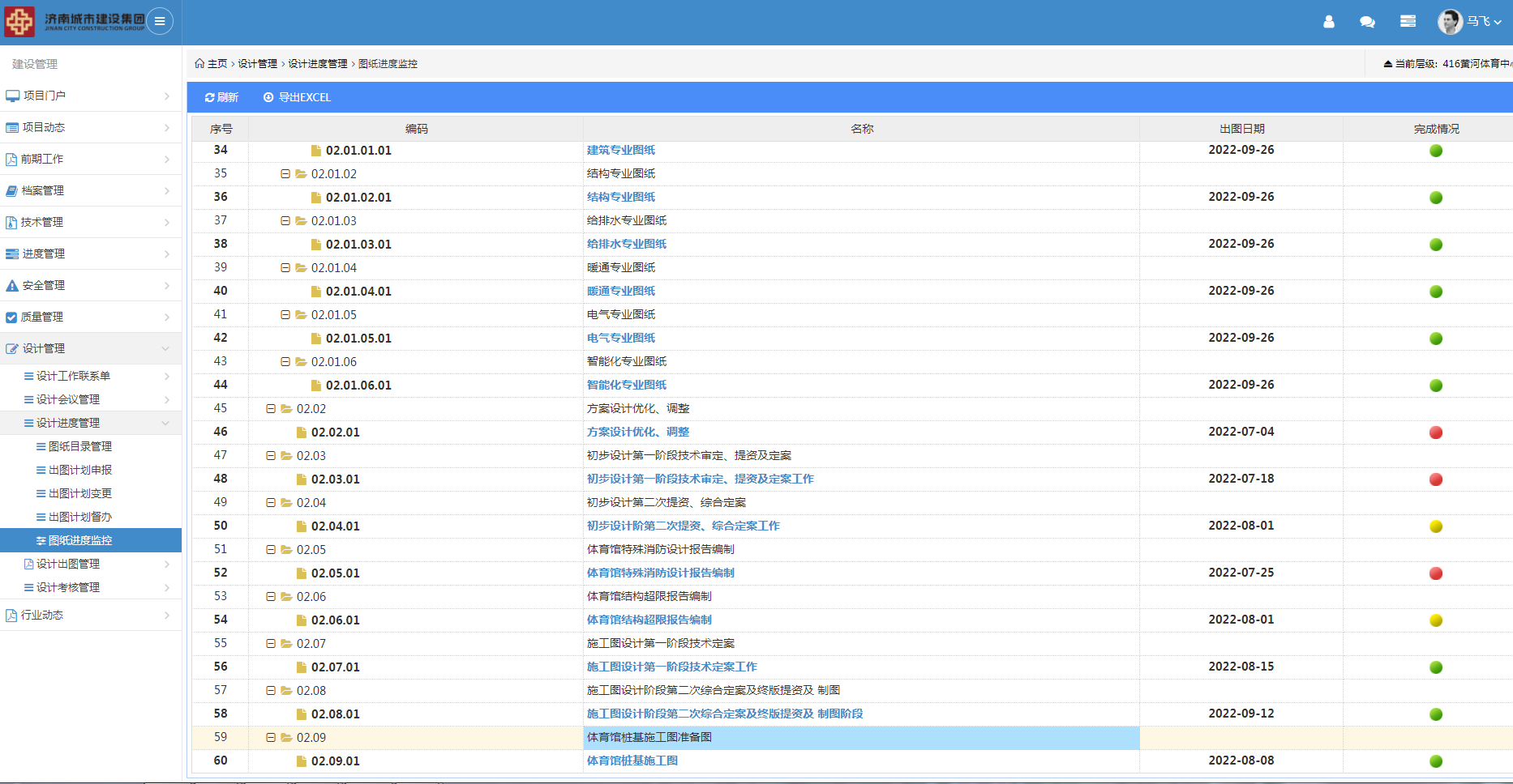 為進一步強化設(shè)計源頭管理,克服設(shè)計過程環(huán)節(jié)多、線下管控難度較大的實際,工程四部OA信息平臺開發(fā)研制設(shè)計管理業(yè)務(wù)功能模塊并在黃河體育中心項目全面應(yīng)用。通過設(shè)計管理業(yè)務(wù)功能模塊,實現(xiàn)出圖計劃、圖紙上傳、分發(fā)簽收、圖紙會審、變更、圖紙文檔的統(tǒng)一編碼與存檔,有效提升設(shè)計管理中工作任務(wù)安排、接收及出圖計劃整體把控。