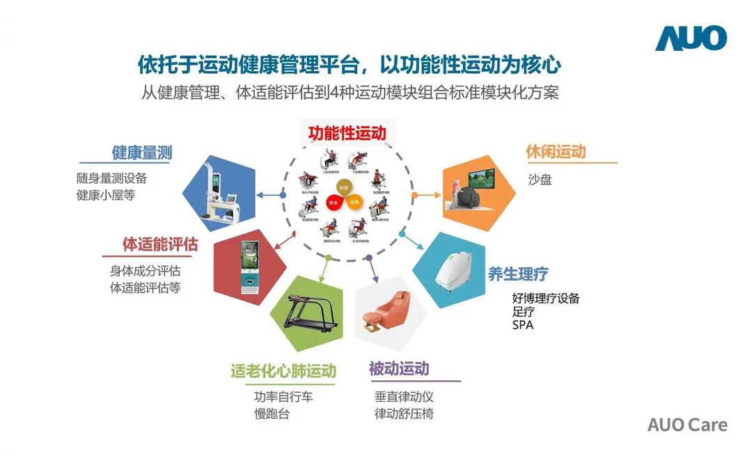 其中,運動健康中心配備了SMARC功能性運動設(shè)備、3D身體掃描儀、健康體適能評估儀、脊椎平衡放松系統(tǒng)等國內(nèi)外先進的智能大型理療、康復(fù)設(shè)備,提供更智能、更準(zhǔn)確、更全面的健康管理服務(wù)。還設(shè)有健康管理中心、中醫(yī)調(diào)理中心及康復(fù)訓(xùn)練室,配有專業(yè)的健管師、中醫(yī)理療師。