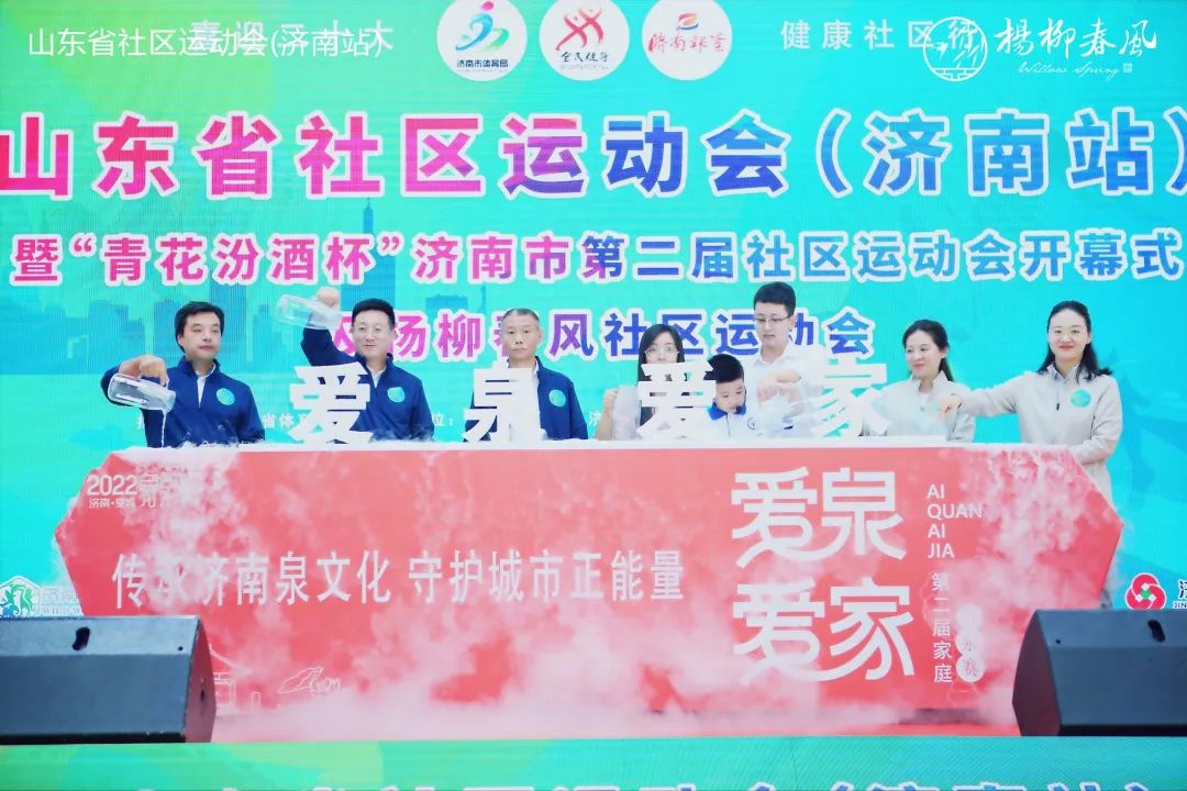 山東省體育局機關(guān)黨委副書記孫明星,濟南市體育局黨組成員、副局長張居忠,槐蔭區(qū)副區(qū)長逯明,濟南日報報業(yè)集團黨委委員、副總編輯謝魯?shù)?,濟南城市建設(shè)集團副總經(jīng)理徐文東出席活動。開幕式現(xiàn)場,與會領(lǐng)導(dǎo)先后啟動濟南市第二屆“愛泉愛家”家庭尋泉賽、濟南市“全民健身最美社區(qū)”評選和“最美社區(qū)社會體育指導(dǎo)員”評選活動。開幕式后進行了楊柳春風(fēng)社區(qū)運動會親子專場,夾背球、同舟共濟、袋鼠跳、齊心協(xié)力、毛毛蟲競速、投壺、夾乒乓球、跳繩、踢毽子等項目設(shè)置多樣,簡單便捷,安全性高,適合全民參與。