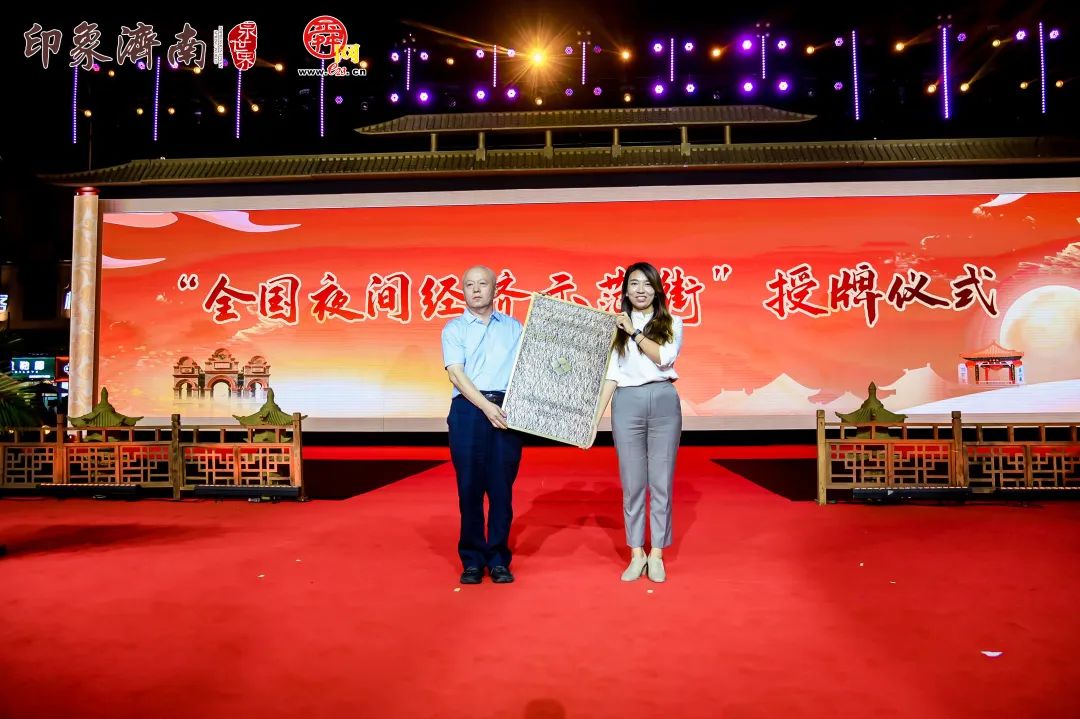 活動現(xiàn)場,舉辦了“全國夜間經(jīng)濟示范街”授牌儀式,“印象濟南•泉世界夜享好時光4.0”也正式升級,面向游客和市民全新亮相。