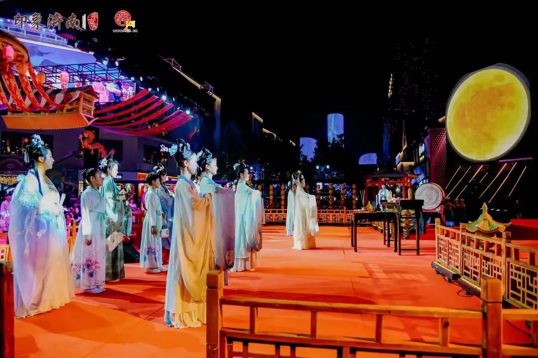 本次活動,作為印象濟南•泉世界品牌文化節(jié)事活動的又一創(chuàng)新呈現(xiàn),同時還是第十屆濟南國際泉水節(jié)的重要組成部分。中秋拜月大典在前四屆的經(jīng)驗基礎上,以“盛世歡歌繁華鎏金”主題,通過拜月典禮、文旅演藝、國風互動等組合創(chuàng)意,持續(xù)打造踐行“文化兩創(chuàng)”的新載體。今年的中秋拜月大典,在展現(xiàn)祭月、賞月、拜月、頌月等傳統(tǒng)民俗的同時,通過歌舞表演、舞臺氛圍、國風互動等形式融合展示,運用多元形態(tài)傳播中華優(yōu)秀傳統(tǒng)文化,讓傳統(tǒng)文化創(chuàng)新展示展演,深入游客內(nèi)心。