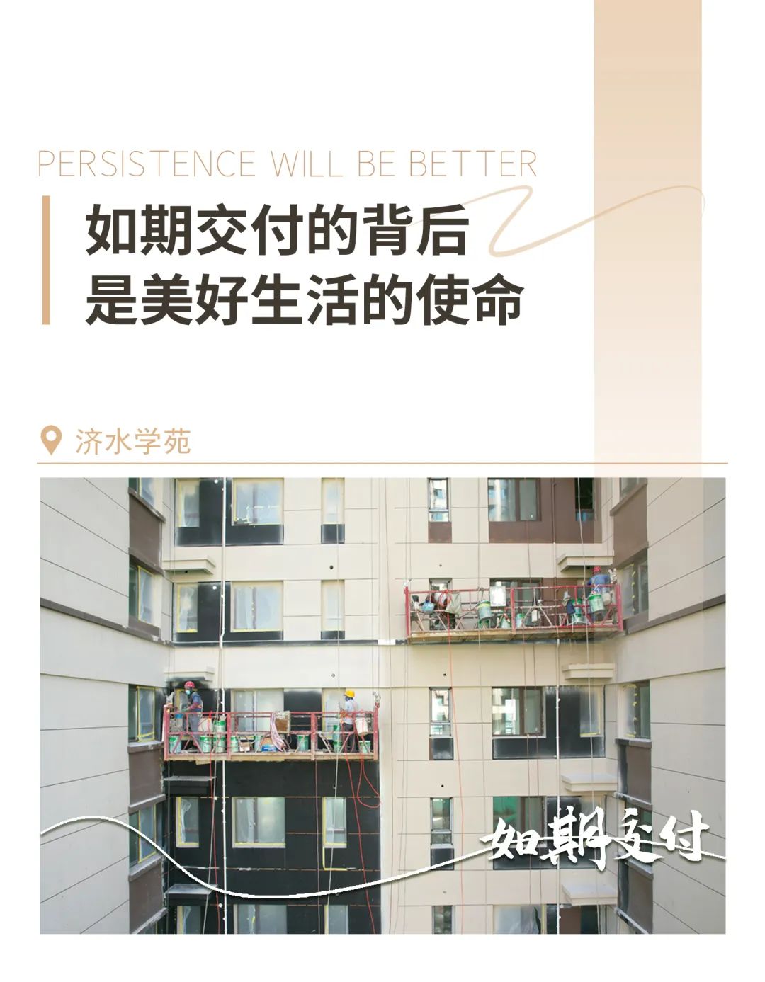克服疫情等不利因素,迎難而上、通力合作,7個多月、200余個日日夜夜、5000多個小時,堅守一線決戰(zhàn)攻堅,多舉措保工期、保進度、保品質,順利完成濟水別苑一期各項建設工作。