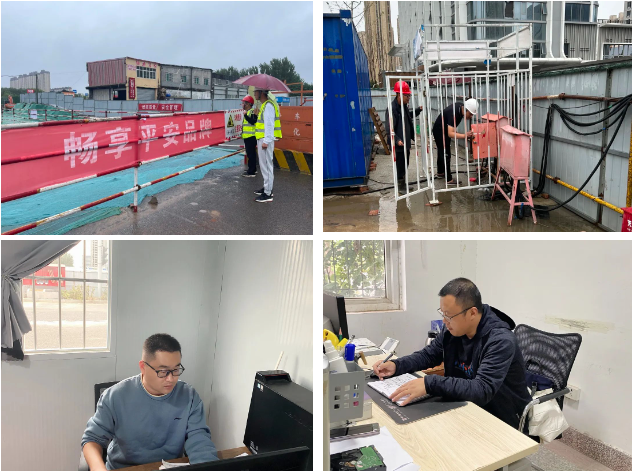 針對(duì)驟變天氣,值班人員密切關(guān)注、加強(qiáng)巡視、及時(shí)匯報(bào)。組織人員對(duì)所轄施工標(biāo)段的生活辦公區(qū)、施工現(xiàn)場(chǎng)、拌合站等區(qū)域進(jìn)行巡視檢查。暴雨期間,多次進(jìn)行現(xiàn)場(chǎng)巡視,并對(duì)出現(xiàn)積水的地方進(jìn)行抽水處理,及時(shí)消除安全隱患。