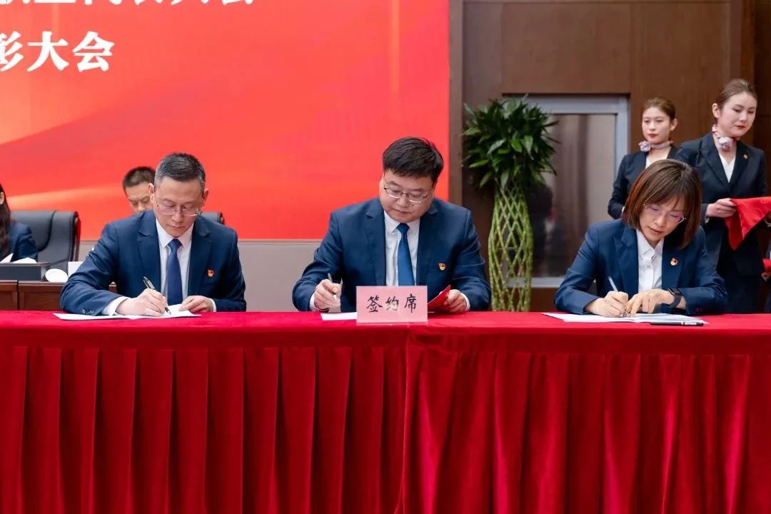 會(huì)上集團(tuán)黨委書記、董事長(zhǎng)史海成,黨委副書記、總經(jīng)理許為民,與部室、子公司主要負(fù)責(zé)人代表,簽訂2023年度《目標(biāo)責(zé)任書》和《全面從嚴(yán)治黨及黨風(fēng)廉政建設(shè)責(zé)任書》;集團(tuán)副總經(jīng)理安玉坤同志宣讀表彰決定,并對(duì)獲獎(jiǎng)集體和個(gè)人代表進(jìn)行了現(xiàn)場(chǎng)表彰。