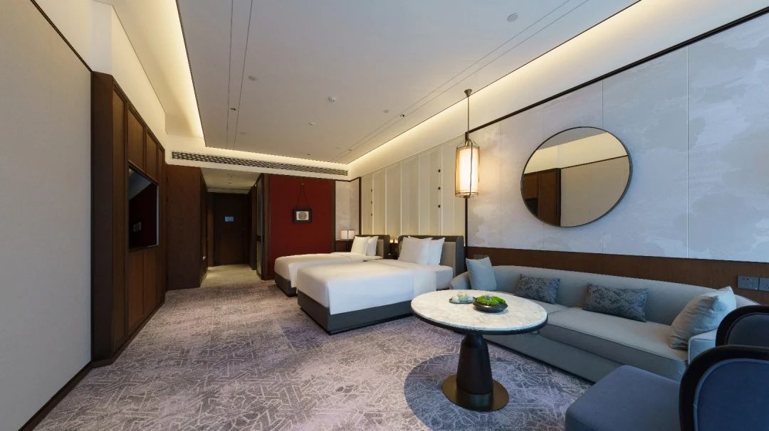 酒店以宋式美學(xué)為設(shè)計(jì)特色,酒店大堂的“云起·鵲華秋色”,餐飲區(qū)的“云深·華屋滿朋”,宴會(huì)廳的“云上·宴賓會(huì)友”,客房的“云歸·曉鏡畫屏”全面詮釋了宋式美學(xué)的匠心獨(dú)運(yùn),將精致和典雅發(fā)揮得淋漓盡致。“中式、簡(jiǎn)約、現(xiàn)代、綠色”是酒店的四大核心理念,可以讓來賓感受到濃厚的中國(guó)傳統(tǒng)文化及細(xì)致入微、始終如一的待客之道。