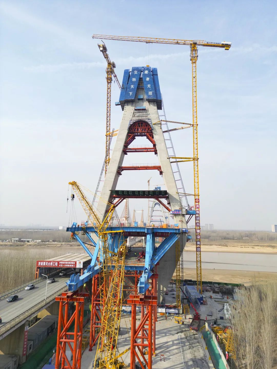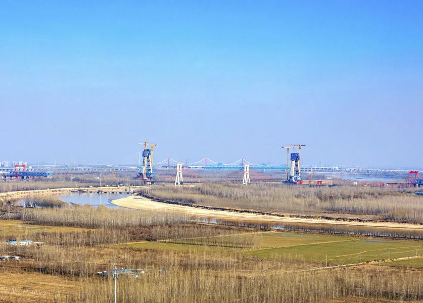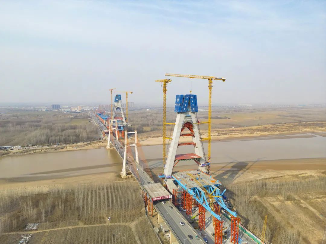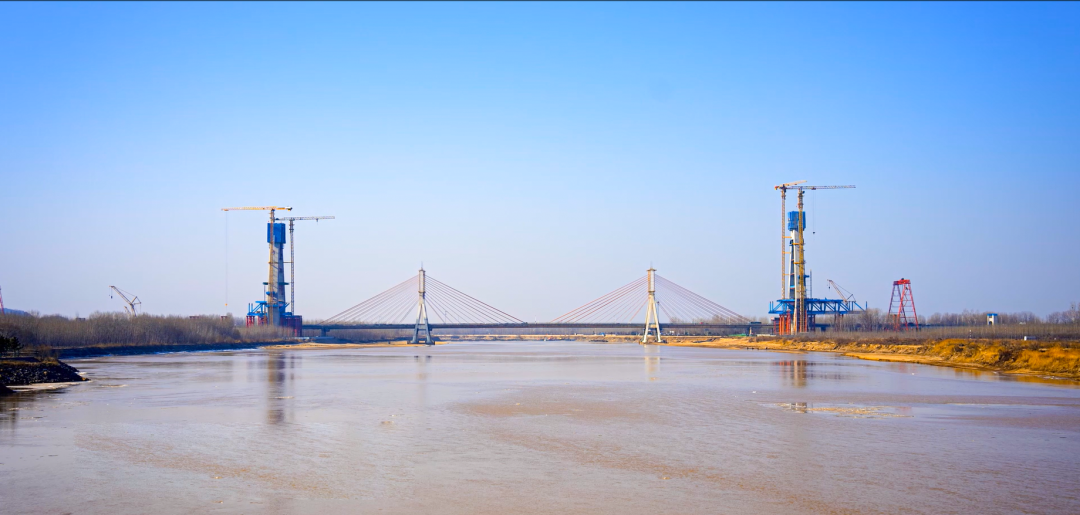 黃河流域濟(jì)南段,濟(jì)南黃河公路大橋東側(cè),黃河上第一座不等跨并橋建設(shè)工程,同時(shí)也是黃河上跨徑最大、鋼橋總長最長的公軌分層合建橋梁,濟(jì)南黃河公路大橋改擴(kuò)建工程正在有序推進(jìn)工程建設(shè)。1982年建成的當(dāng)時(shí)亞洲跨徑最大的濟(jì)南黃河公路大橋,在服役41年之后,見證著又一次“歷史跨越”。