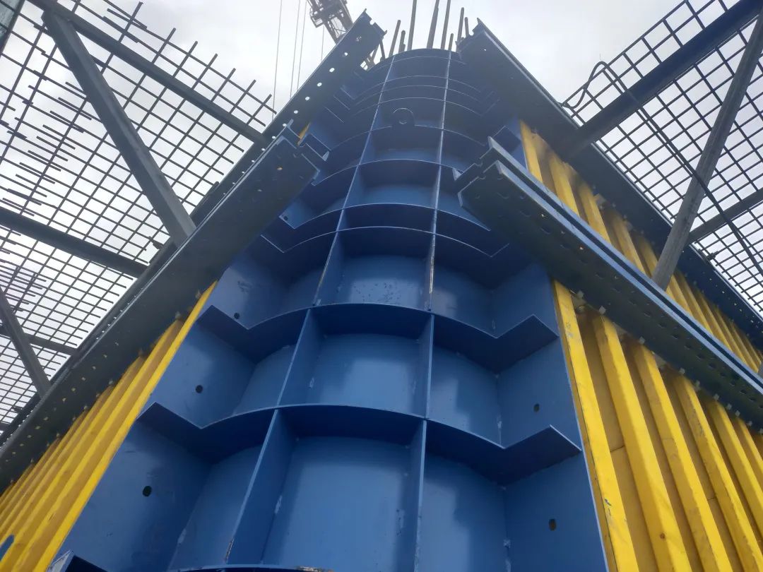 為開辟施工空間,項(xiàng)目自主研發(fā)了非鋼管落地支撐體系的新型全封閉液壓爬模系統(tǒng),將液壓爬模的支點(diǎn)從地面轉(zhuǎn)移到柱體,充分利用了既有結(jié)構(gòu),最大限度讓出施工組織空間。同時(shí)全封閉液壓爬模系統(tǒng)也在最大程度上保障了施工人員安全。