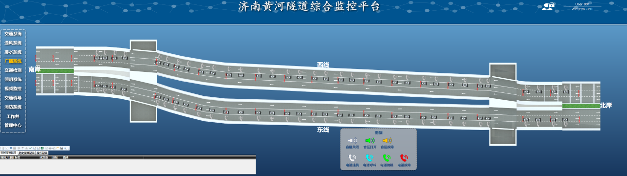 在濟南黃河濟濼路隧道中,交通系統(tǒng)的主要設(shè)備包括72個道路指示燈、7塊情報板和12組車感線圈,設(shè)備的應(yīng)用可以有效地誘導(dǎo)車輛按照規(guī)定的路線和速度行駛,保證交通流暢和安全,進(jìn)一步提高交通運營效率;