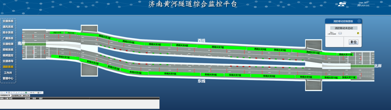 隧道消防系統(tǒng)擁有147套泡沫噴霧、136個雙波長火焰探測器、87個消火栓箱、288個滅火器箱、2條感溫光纖和6臺功率110kw風(fēng)量36萬m³/h排煙風(fēng)機,設(shè)備的應(yīng)用可以在火災(zāi)初期及時發(fā)現(xiàn)并處理火災(zāi),保障隧道內(nèi)人員和設(shè)施的安全;