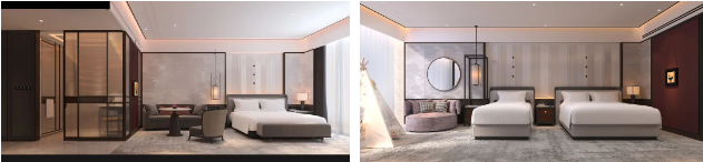 客房區(qū)域的設(shè)計以“畫屏”借助宋代屏風(fēng)的藝術(shù)形態(tài),通過提取、拆解、重構(gòu),以中國傳統(tǒng)繪畫留白的手法契合現(xiàn)代年輕人的審美。