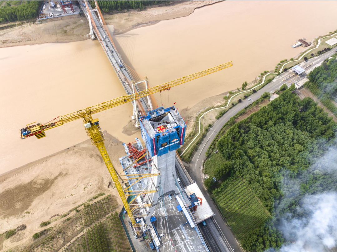由濟(jì)南城市建設(shè)集團(tuán)投資建設(shè),建設(shè)集團(tuán)所屬濟(jì)南城建集團(tuán)公司參與承建的G104京嵐線濟(jì)南黃河公路大橋擴(kuò)建工程主橋?yàn)殡p塔雙索面公軌兩用鋼桁梁斜拉橋,主跨488米,是黃河上在建最大跨徑公軌兩用斜拉橋。主橋索塔高168.6米,寶瓶形構(gòu)造,造型新穎、施工難度大、技術(shù)要求高。項(xiàng)目部嚴(yán)格按照住建部、省、市危險(xiǎn)性較大的分部分項(xiàng)工程安全管理規(guī)定、危險(xiǎn)性較大的分部分項(xiàng)工程專(zhuān)項(xiàng)施工方案編制指南及相關(guān)要求,成立技術(shù)創(chuàng)新小組、施工部署方案策劃評(píng)審領(lǐng)導(dǎo)小組等組織機(jī)構(gòu),充分調(diào)動(dòng)技術(shù)人員積極性、創(chuàng)造性,編制了《索塔專(zhuān)項(xiàng)施工方案》,并成功應(yīng)用于本工程索塔施工中,達(dá)到安全生產(chǎn)、降本增效的目的,為推動(dòng)項(xiàng)目安全有序建設(shè)蓄勢(shì)賦能。