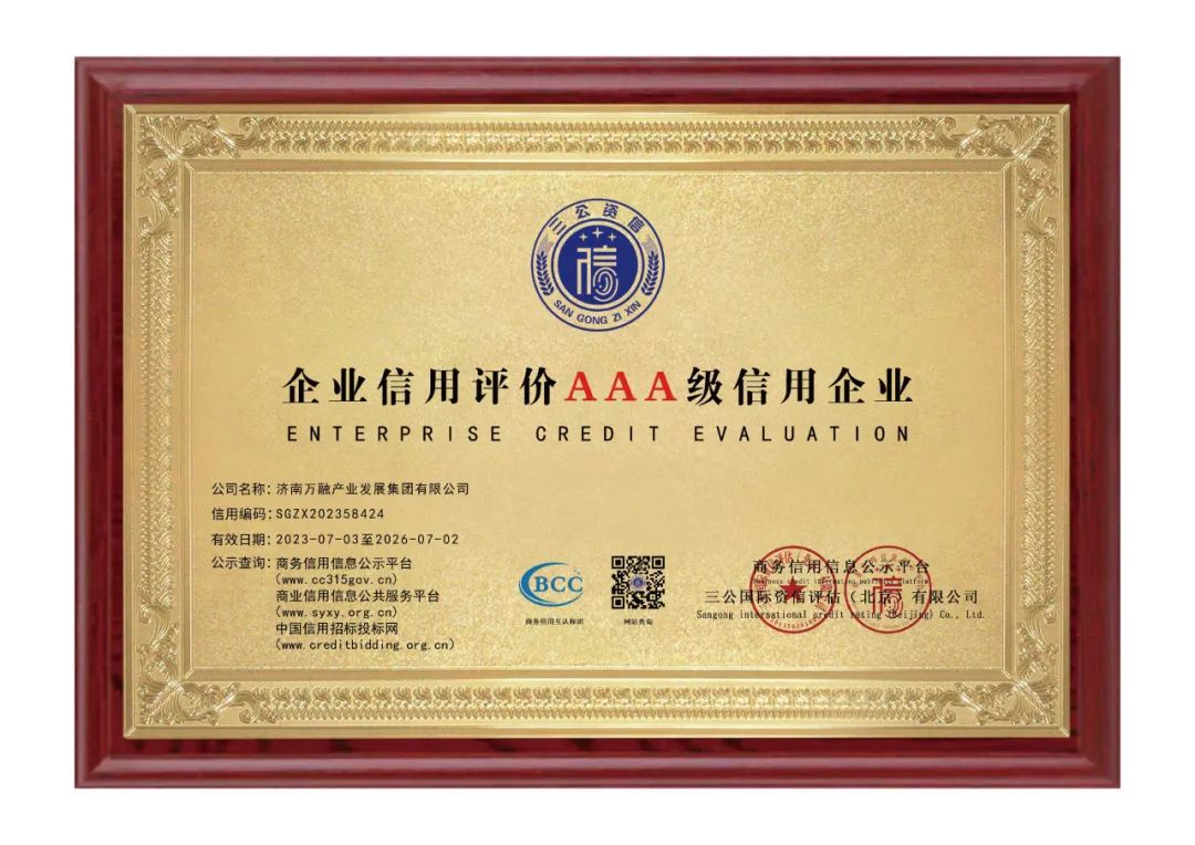 “信用等級(jí)認(rèn)證”是由行業(yè)專家對公司近三年整體運(yùn)營管理情況進(jìn)行全面嚴(yán)苛的綜合評(píng)定,AAA級(jí)是企業(yè)的最高信用評(píng)價(jià)級(jí)別。該信用評(píng)價(jià)結(jié)果同步在商務(wù)信用信息公示平臺(tái)、商業(yè)信用信息公共服務(wù)平臺(tái)、中國信用招標(biāo)投標(biāo)網(wǎng)平臺(tái)等信用平臺(tái)進(jìn)行公示。