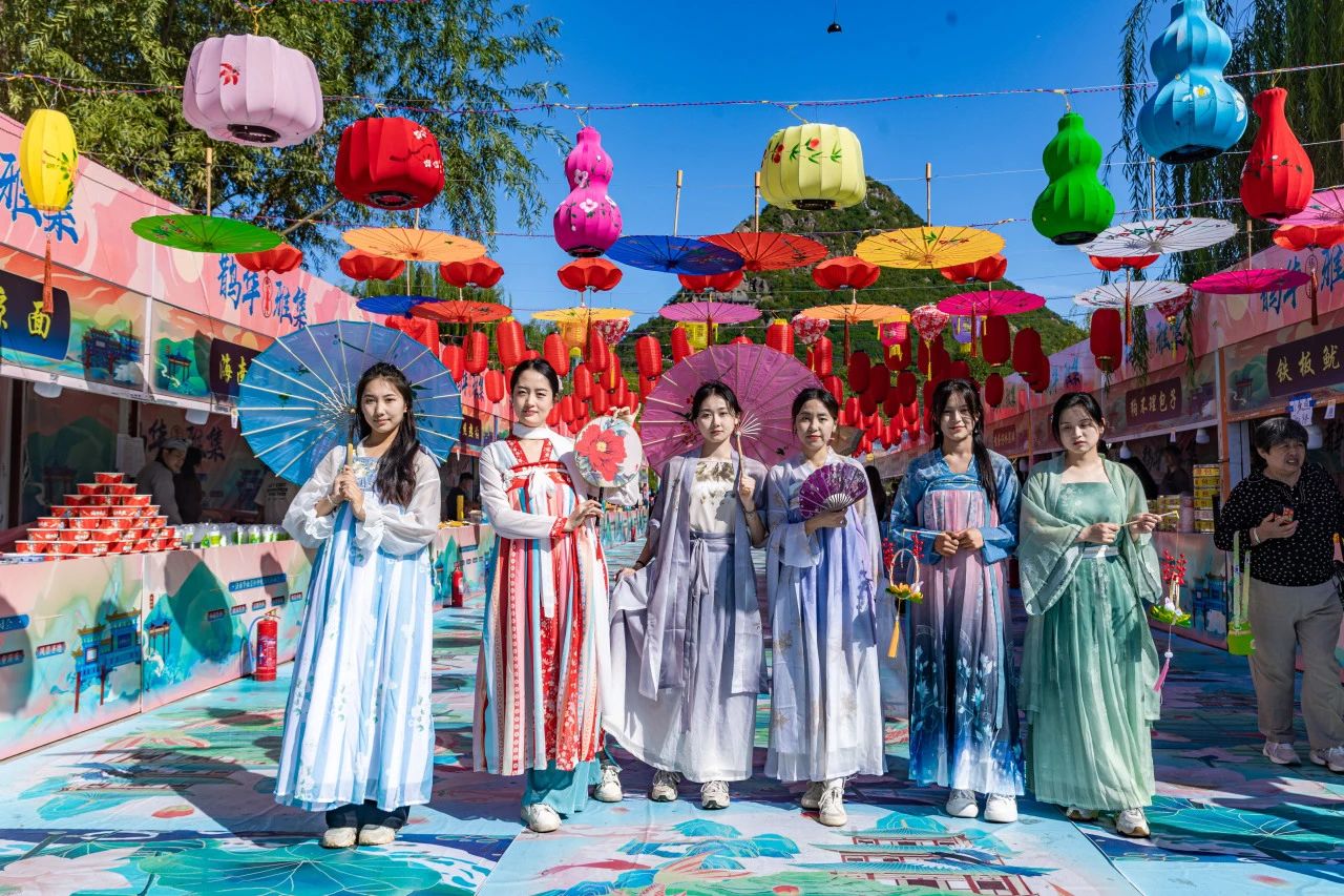 10月1日,濟(jì)南華山風(fēng)景區(qū)古風(fēng)市集——鵲華雅集開市,70多家市集商戶還原古代市集繁榮市貌,現(xiàn)場(chǎng)歌舞不斷、琴聲悠揚(yáng)。