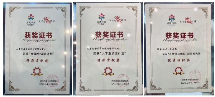 近日,山東濟(jì)西濕地管理有限公司、濟(jì)南泉世界商業(yè)管理有限公司在濟(jì)南市文化和旅游局組織的“大學(xué)生讀城計劃”中榮獲特別貢獻(xiàn)獎及“Z世代濟(jì)南說”短視頻大賽優(yōu)秀組織獎。