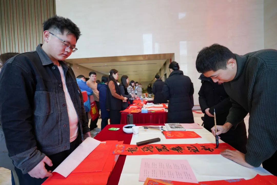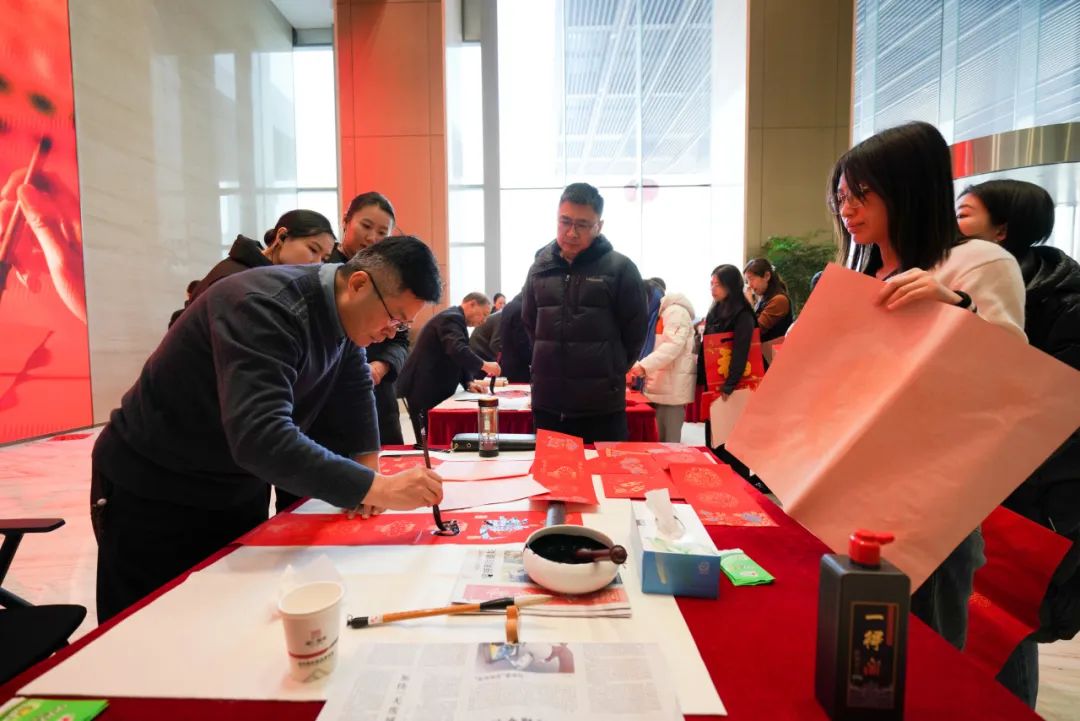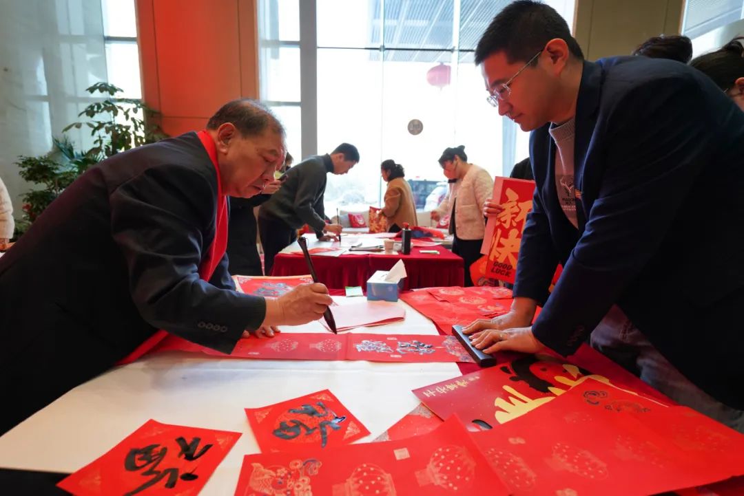 活動現(xiàn)場,書法家結(jié)合企業(yè)及職工的不同需求,為集團職工書寫春聯(lián),同時集團職工書法愛好者也紛紛參與其中,共同書寫對美好生活的期盼。