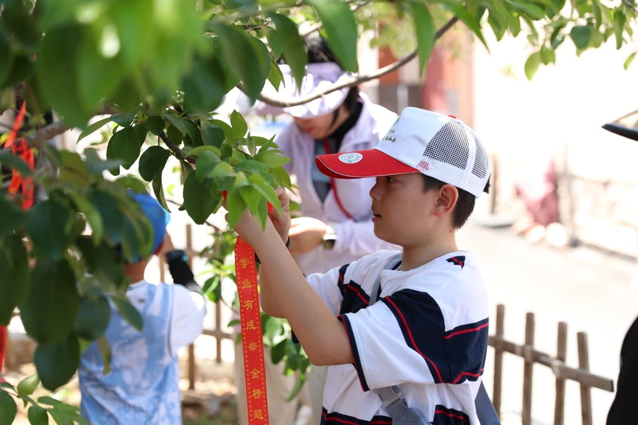 在狀元溝村,孩子們聆聽(tīng)曹鴻勛狀元故事,參觀千年流蘇樹(shù),制作并懸掛心愿卡片,在狀元門(mén)前拍照打卡,了解了狀元文化和中國(guó)古代科舉制度知識(shí),感受了狀元溝村崇文重教的傳統(tǒng)風(fēng)俗。