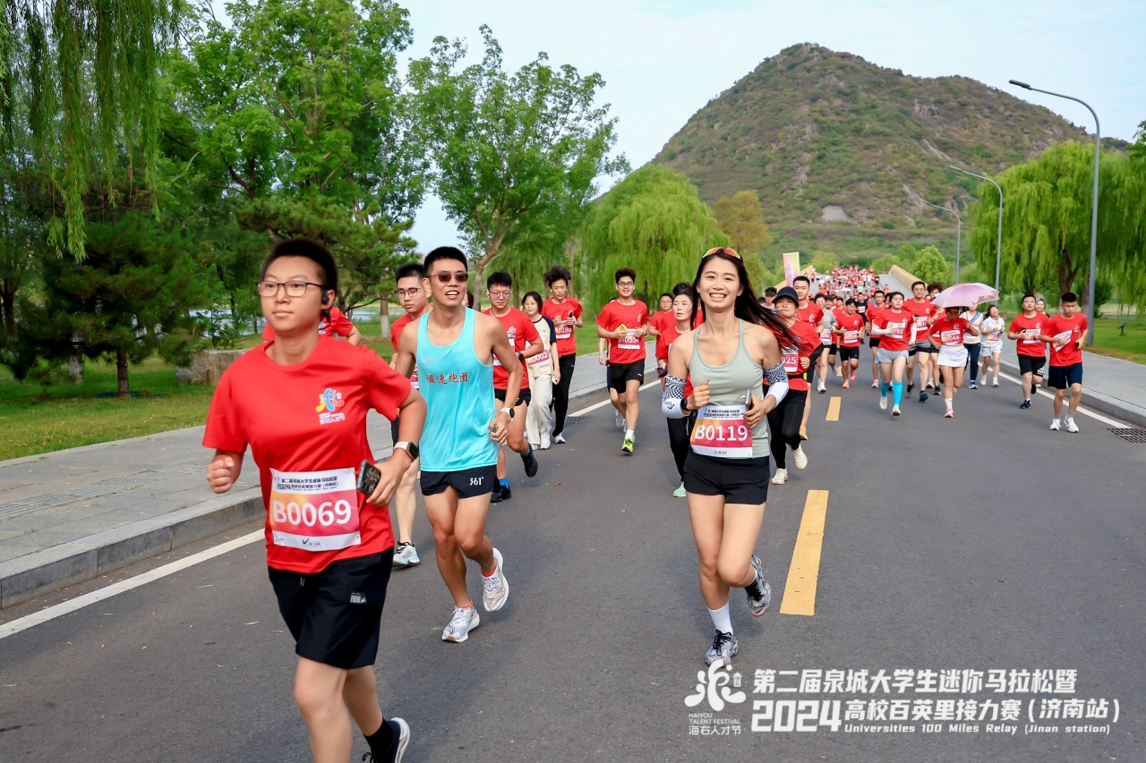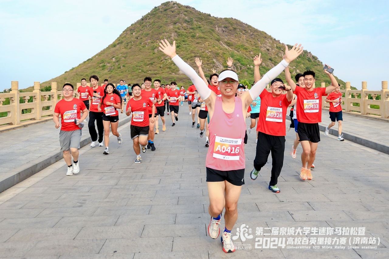“泉”在濟(jì)南,逐夢(mèng)奔跑。6月16日,第二屆泉城大學(xué)生迷你馬拉松暨2024高校百英里接力賽(濟(jì)南站)在濟(jì)南華山湖景區(qū)成功舉行,來自全國(guó)的43支高校隊(duì)伍、86組運(yùn)動(dòng)員參賽,5000余名大學(xué)生及校友會(huì)成員參加了迷你馬拉松。