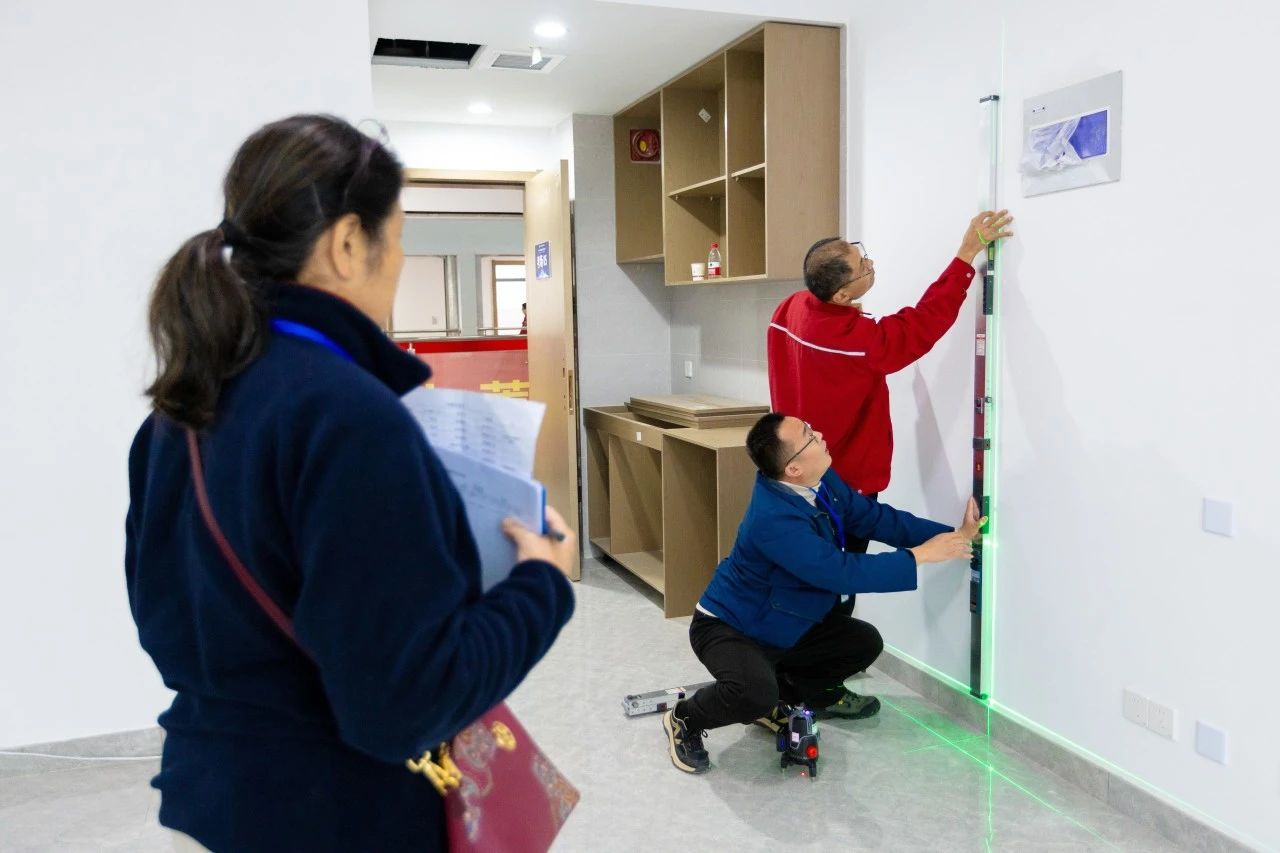 此次競賽立足行業(yè)實(shí)際工作場景,多維度、全方位地檢驗(yàn)參賽選手的質(zhì)量檢驗(yàn)專業(yè)知識(shí)和技能水平,設(shè)置理論考核和實(shí)際操作兩部分。理論競賽內(nèi)容包括法律法規(guī)、工程測量相關(guān)規(guī)范基礎(chǔ)知識(shí)等,實(shí)操比賽涵蓋了房建工程裝飾階段的測量。