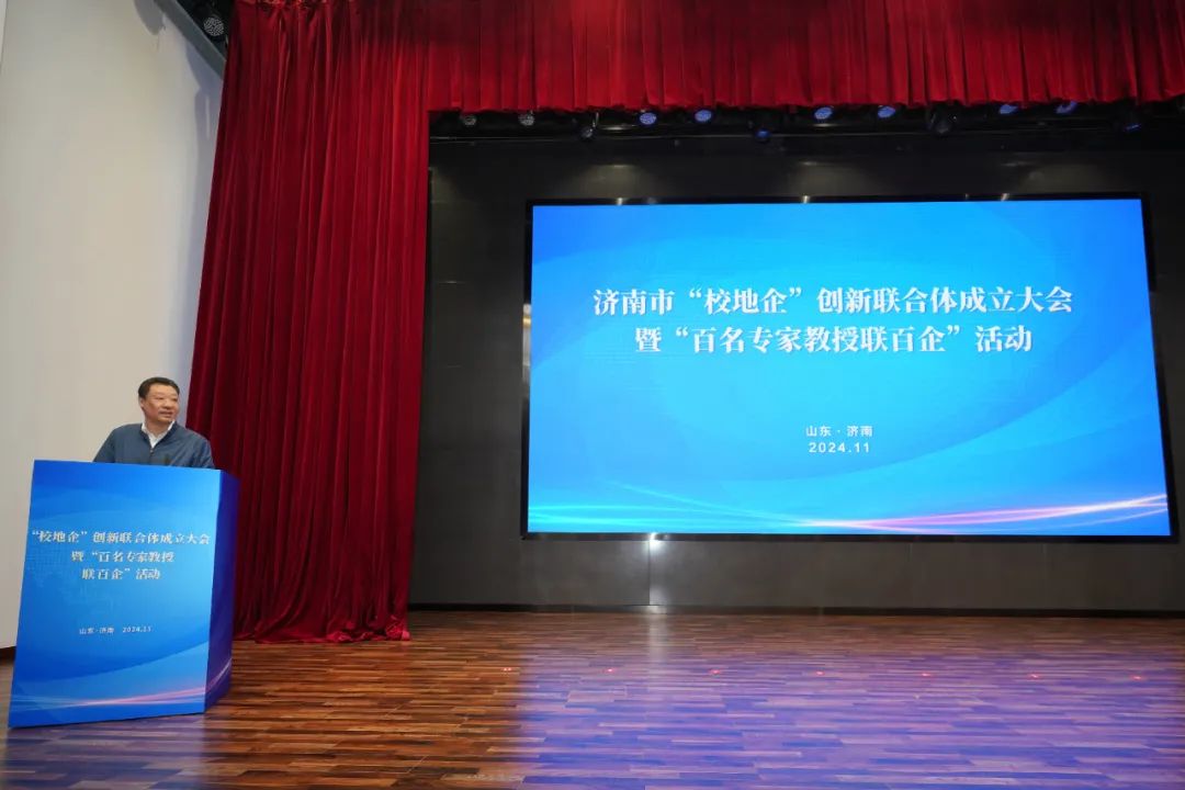 建設(shè)集團(tuán)黨委副書記鐘善良代表市屬國有企業(yè)在“校地企”創(chuàng)新聯(lián)合體成立大會上發(fā)言,近年來,濟(jì)南城市建設(shè)集團(tuán)立足創(chuàng)新驅(qū)動發(fā)展核心戰(zhàn)略,依托城市開發(fā)、建設(shè)、經(jīng)營的豐富資源與科技實力,不斷深化校地企合作,構(gòu)建集人才培養(yǎng)、技術(shù)研發(fā)、產(chǎn)業(yè)融合、文化引領(lǐng)于一體的綜合性科創(chuàng)人才發(fā)展聚集區(qū)。聚焦產(chǎn)業(yè)發(fā)展,精準(zhǔn)對接需求,以集團(tuán)歐美同學(xué)會、黨外知識分子聯(lián)誼會等為主要力量的科技創(chuàng)新團(tuán)隊,積極與海內(nèi)外高校溝通聯(lián)絡(luò),聚焦集團(tuán)產(chǎn)業(yè)高質(zhì)量轉(zhuǎn)型發(fā)展的難點、阻點,以“提升效能、產(chǎn)業(yè)融通”為導(dǎo)向,參與并推動了多個科技創(chuàng)新項目的科研應(yīng)用;搭建合作平臺,促進(jìn)深度融合,集團(tuán)黨委始終注重搭建平臺、整合資源,促進(jìn)產(chǎn)學(xué)研深度融合,在市委統(tǒng)戰(zhàn)部的指導(dǎo)幫助下,與山東大學(xué)、山東師范大學(xué)、西南交通大學(xué)等高校深入合作,與山東建筑大學(xué)共建實踐創(chuàng)新基地,共享高價值研發(fā)設(shè)備,共建高水平科研平臺;強(qiáng)化科技創(chuàng)新,賦能企業(yè)發(fā)展,集團(tuán)借助與同濟(jì)大學(xué)、哈爾濱工業(yè)大學(xué)等高校的深度合作,在各級政府部門立項科研項目86項,新增授權(quán)專利294項,獲批高新技術(shù)企業(yè)15家,技術(shù)中心、重點實驗室等平臺20個,創(chuàng)新型資質(zhì)21個,并積極培育孵化戰(zhàn)略性新興產(chǎn)業(yè),持續(xù)加大對科創(chuàng)城數(shù)字科技產(chǎn)業(yè)園、貫月新質(zhì)谷等五大產(chǎn)業(yè)園區(qū)在生物醫(yī)藥、智能制造、高性能復(fù)合材料等產(chǎn)業(yè)的投資建設(shè),不斷提升企業(yè)科技核心競爭力。
