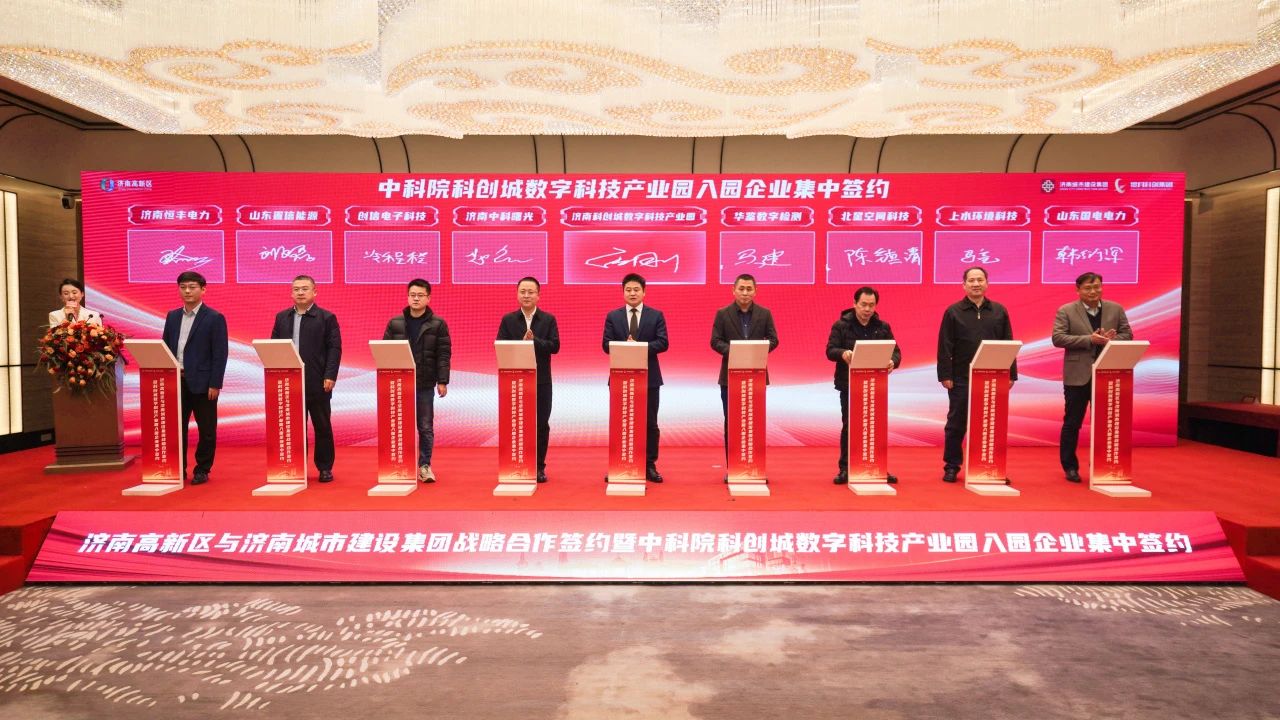 12月25日,濟南高新區(qū)與濟南城市建設集團舉行戰(zhàn)略合作簽約暨中科院科創(chuàng)城數字科技產業(yè)園入園企業(yè)集中簽約活動。濟南市副市長,高新區(qū)黨工委副書記、管委會常務副主任任廣鋒出席活動并見證簽約。市科技局黨組書記、局長黃波,濟南高新區(qū)管委會副主任、濟高科創(chuàng)投資集團董事長兼總經理劉松,濟南城市建設集團黨委副書記、總經理楊峰,建設集團副總經理徐文東參加活動。