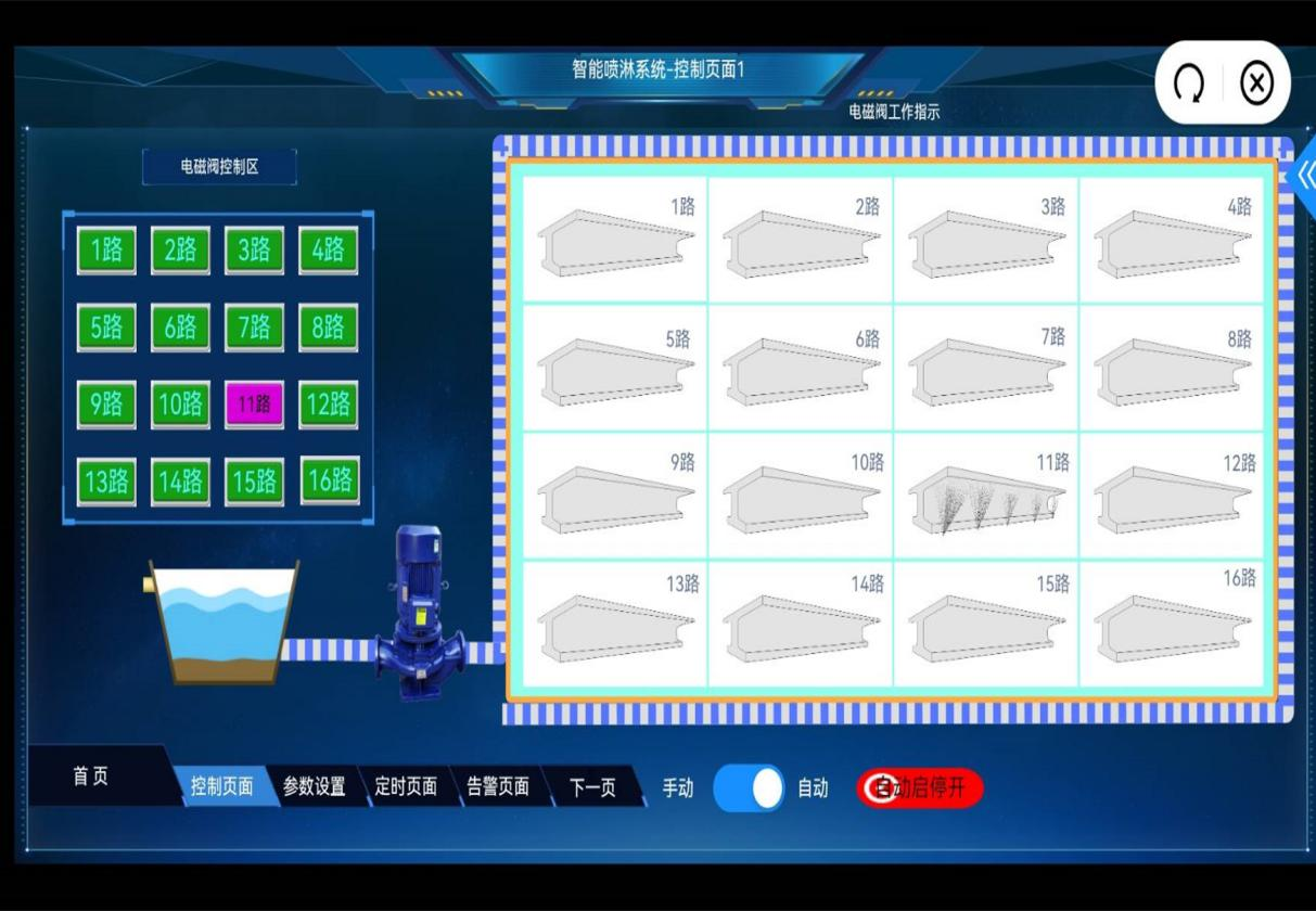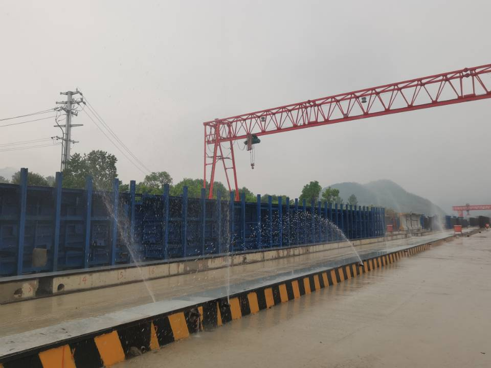 該系統(tǒng)在梁場建設(shè)時(shí)提前在臺座中預(yù)埋噴淋管道,管道與自動供儲水后臺相連通。當(dāng)T梁模板拆除后,可通過手機(jī)APP控制噴淋系統(tǒng)對T梁的腹板和翼板進(jìn)行全面均勻噴灑,確保T梁養(yǎng)護(hù)無死角,同時(shí)通過手機(jī)應(yīng)用控制養(yǎng)護(hù)操作,隨時(shí)隨地一鍵啟動或關(guān)閉,必要時(shí)選擇自動化模式,實(shí)現(xiàn)T梁24小時(shí)不間斷養(yǎng)護(hù)。