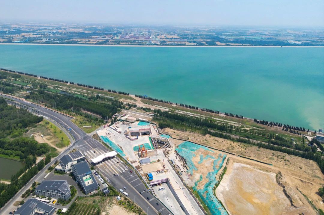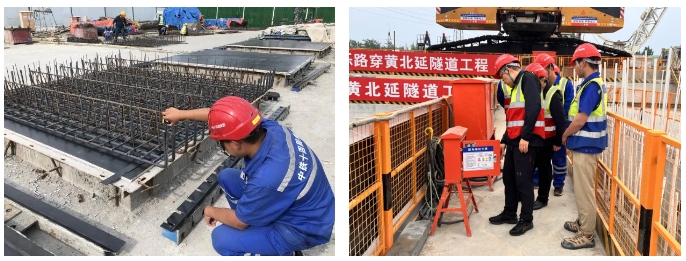 濟濼路穿黃北延隧道工程起自黃河隧道敞開段,通過兩臺4000噸重、直徑為15.76米的盾構(gòu)機以隧道方式下穿邯濟鐵路、鵲山水庫后,以明挖暗埋方式下穿石濟客專及邯膠聯(lián)絡(luò)線,過科學(xué)城南邊界路后出地面,繼續(xù)向北直至國道G308(北延工程終點)。采用雙管雙層隧道,雙向六車道公鐵合建方案,管片外徑15.2米,項目全長4.38公里,其中隧道總長度3.23公里(含盾構(gòu)段2.05公里)。上層道路采用城市主干路標(biāo)準(zhǔn),雙向六車道,設(shè)計速度60公里/小時。下層軌道交通采用市域鐵路標(biāo)準(zhǔn),設(shè)計速度100公里/小時。