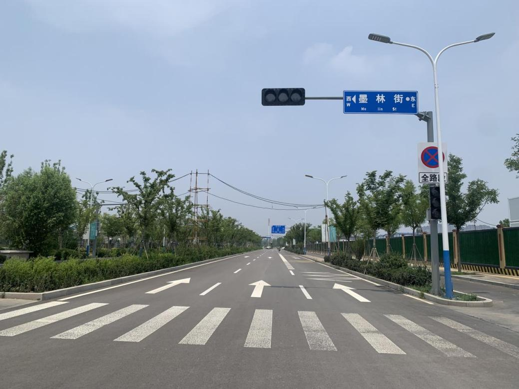 聊城路西延新建道路全長(zhǎng)802.71米,其中西段西起月牙路東至順安路北延,紅線寬度25米;東段西起順安路北延?xùn)|至縱四路,紅線寬度24米。
