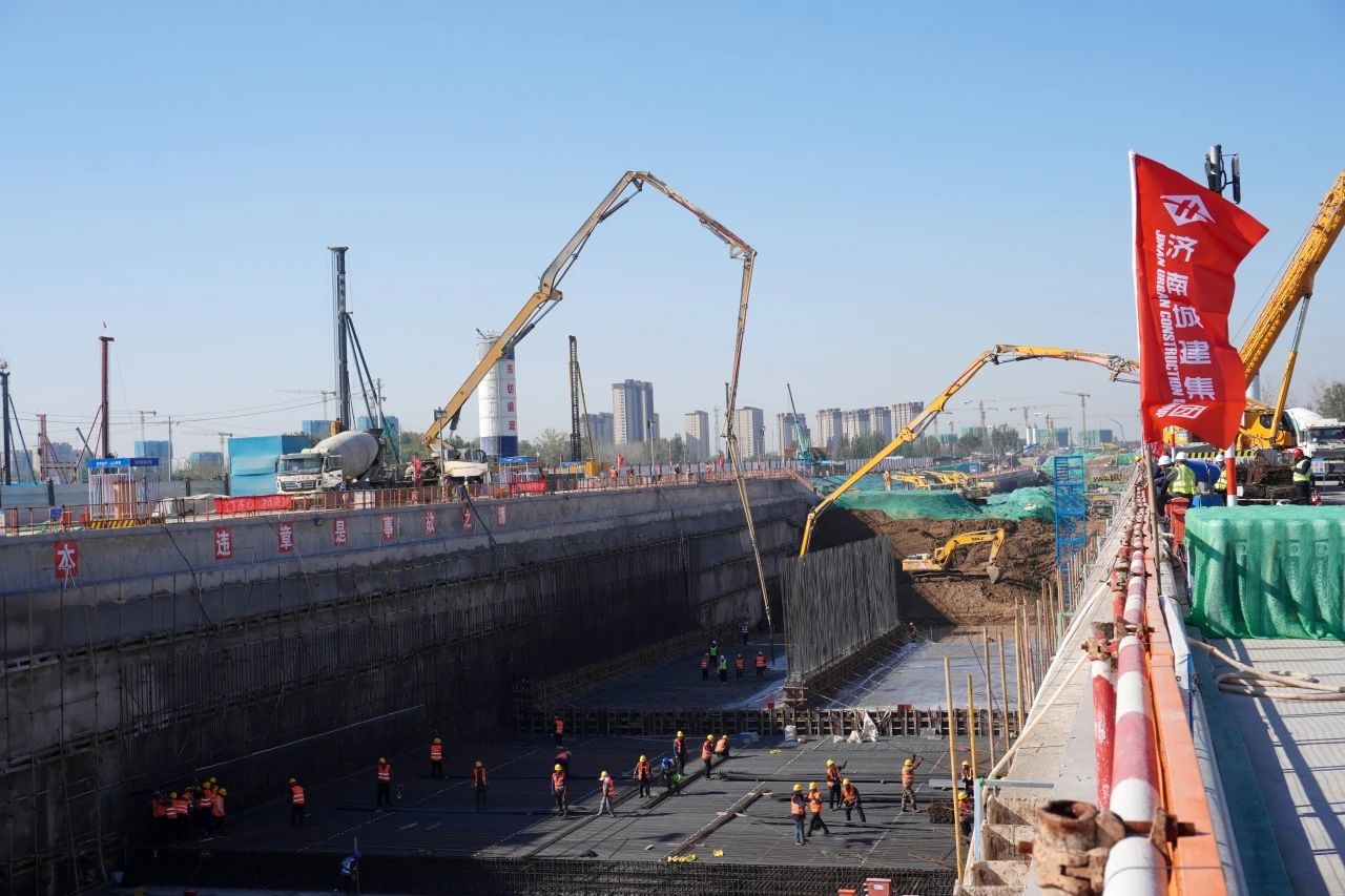 11月6日,由建設(shè)集團受委托建設(shè)的濟南新舊動能轉(zhuǎn)換起步區(qū)黃河體育會展及科技智造園區(qū)基礎(chǔ)設(shè)施(黃河大道二期)工程迎來關(guān)鍵節(jié)點,濟南城建集團公司施工一標(biāo)段完成首件底板混凝土澆筑,為全線首段完成底板混凝土澆筑的標(biāo)段。