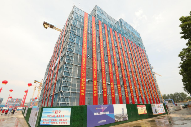 魯澳大健康科技園是山東省與澳門在中醫(yī)藥領(lǐng)域合作的核心平臺(tái),由濟(jì)南市、山東中醫(yī)藥大學(xué)、澳門科技大學(xué)三方聯(lián)手打造。項(xiàng)目位于長(zhǎng)清區(qū)大學(xué)路,總建筑面積19.6萬㎡,是建設(shè)集團(tuán)產(chǎn)業(yè)園經(jīng)濟(jì)產(chǎn)業(yè)鏈?zhǔn)着?xiàng)目,由所屬山東貫月科創(chuàng)投資集團(tuán)投資建設(shè)。項(xiàng)目共分為兩個(gè)標(biāo)段,當(dāng)前封頂?shù)膶儆诙?biāo)段。